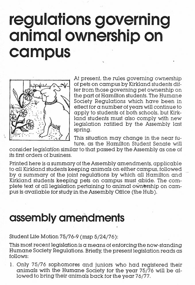 From the 1976-1977 Hamilton/Kirkland Student Handbook