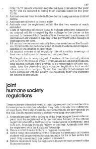 I remember great agonies in the Assembly over the process of crafting animal regulations, of which, at first, there were none. But the only restriction I remember was one barring “barnyard” animals at some point, and then, of course, there ensued very Jesuitical discussions about the definition of “Barnyard”.