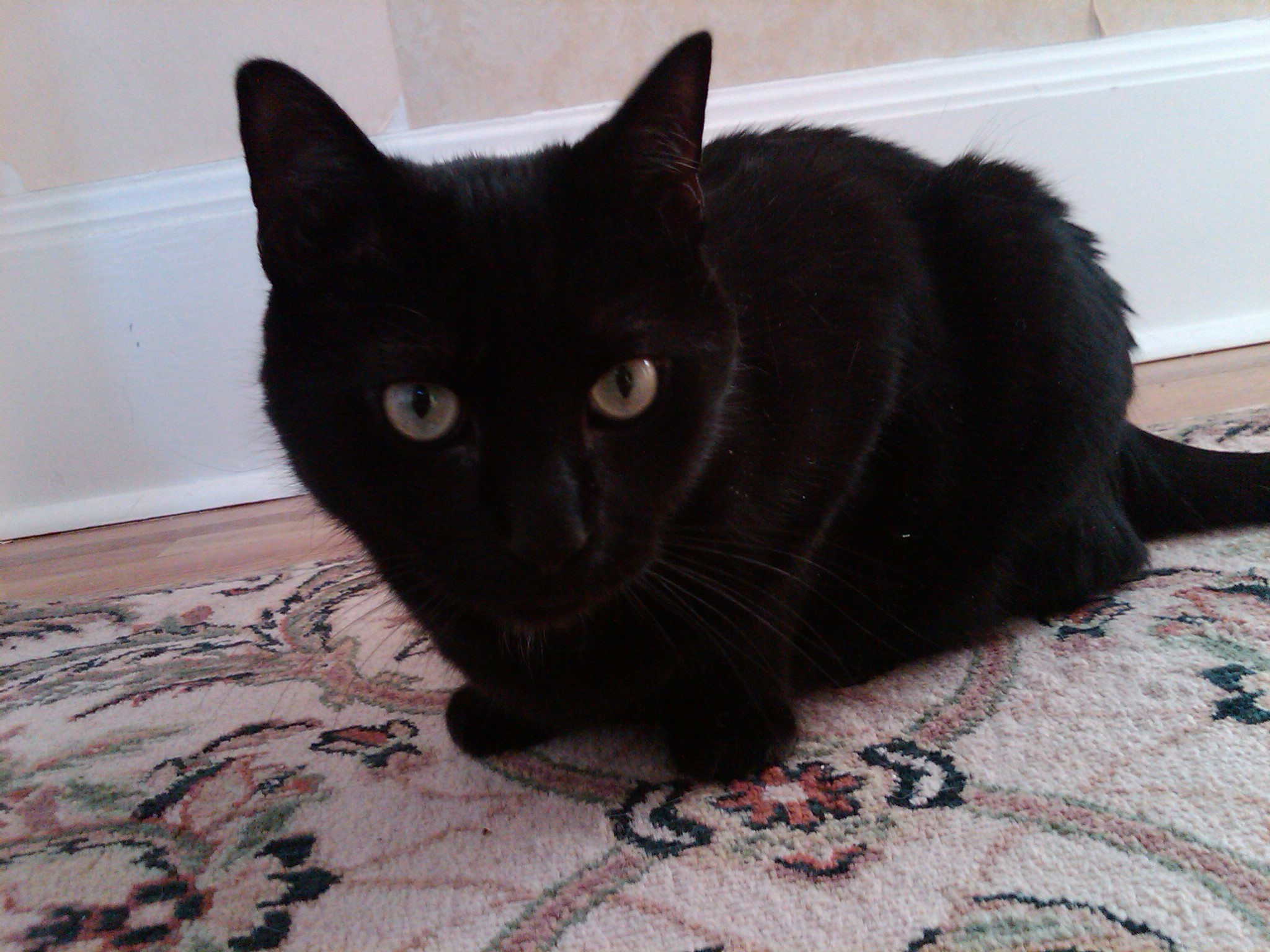Over Fallcoming Weekend in 2008, four Kirkland women (Shelley Cowan, Jo Pitkin, Jennie Morris and Judy Silverstein), who were all staying at Woody Root’s house, went for a long walk in the beautiful October sunshine.  In the middle of a denuded cornfield, a tiny black kitten appeared and assertively joined them, continually gamboling between their legs. Despite their best efforts to find his home, it became very clear that this kitten decided he belonged with them.  Following much admiration and discussion, this kitten became mine. We thought of naming him Kirkland (which seemed a bit much for such a tiny thing), but I settled on Sam (for Sam Babbitt).