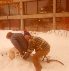 Winter in Clinton was both beautiful and beguiling. It also seemed to last forever. The long walk from the far dorms at Kirkland (Major, Minor) to the Hamilton Science Building stretched along footpaths edged by growing walls of snow that had yellow poles poking out, and the sheer height often seemed overwhelming. We joked that we lived in the great tundra and would be snowed in atop College Hill until May. It also meant we had excellent conditions for snowshoeing and cross-country skiing across the pristine expanse of the land behind Kirkland College.