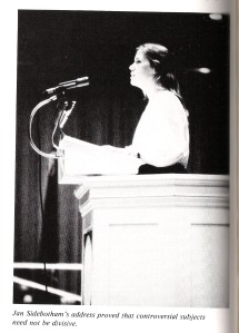 Although we’ve been listening to this speech for a few days prior to posting, it still resonates each time. How powerful – and amazing that we can hear Jan’s words, in her voice, some three decades later.