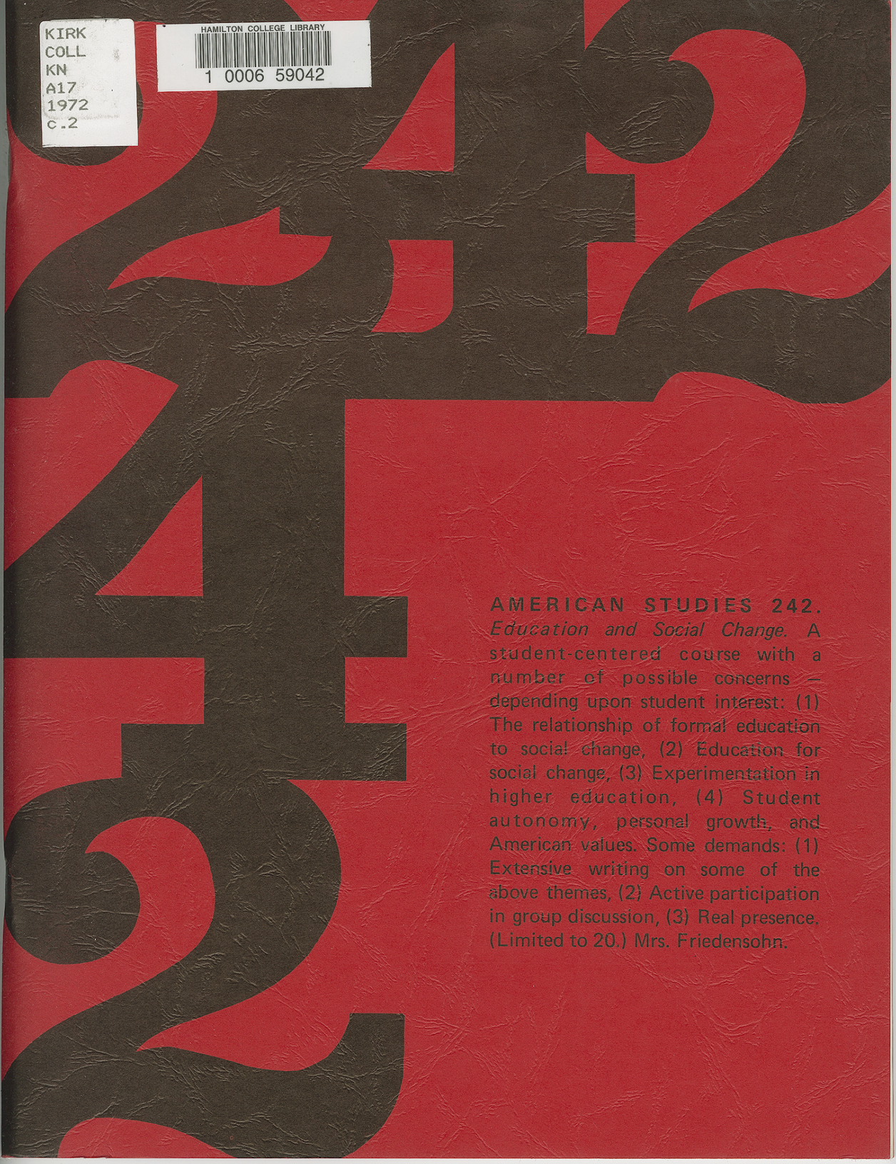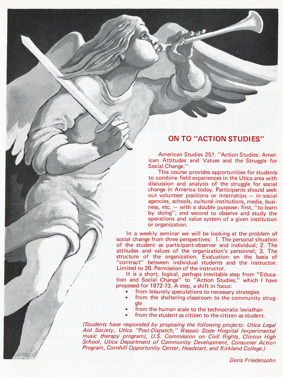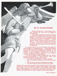[Ed. Note: A gallery of images and illustrations from 242: Education and Social Change and Action Studies: American Attitudes and Values and the Struggle for Social Change can be seen at this link. A contemporary video of Prof. Friedenshohn discussing her husband’s work and legacy can be viewed on YouTube.]