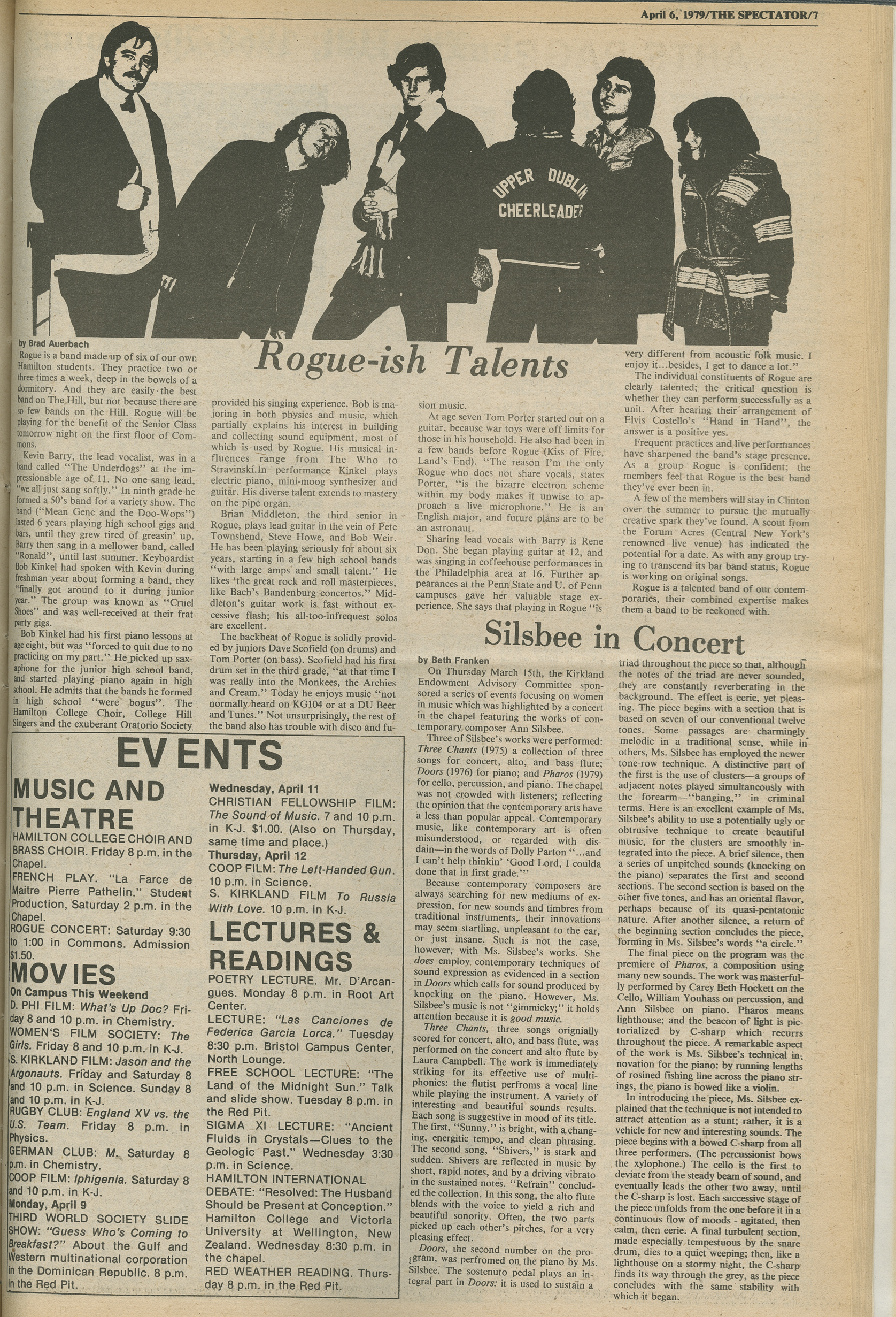 Rogue formed toward the end of the 1970s, just as the two colleges were merging. The band included Hamilton musicians and Kirkland’s Rene Don.