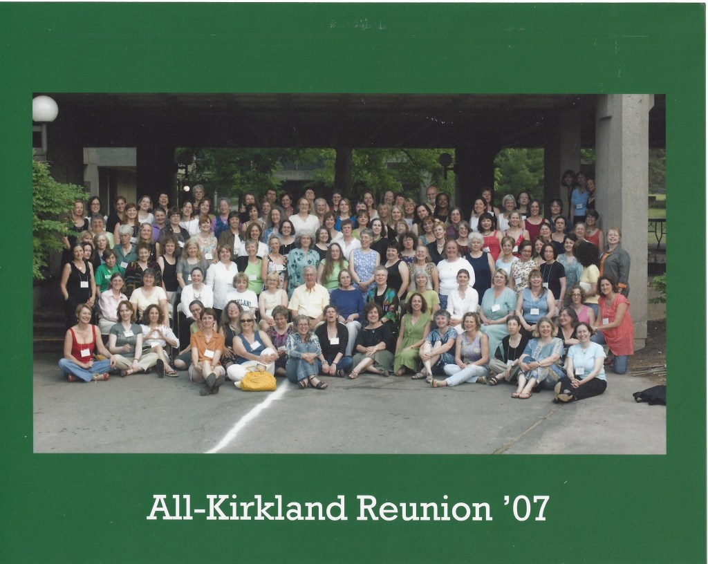 This is when cross-class alumnae connections, and our access to the Hamilton College Archives proved their value to me. The current archivist, Jeremy Katz, quickly responded to questions, saying “… it looks like Reunion Weekend changed from fall to summer in 1981.” While a fifth-year cycle is somewhat established, it’s clear that the College gives special attention to the 10th, 25th, and 50th year anniversaries. So there was no gathering five years after Kirkland’s first class graduated.