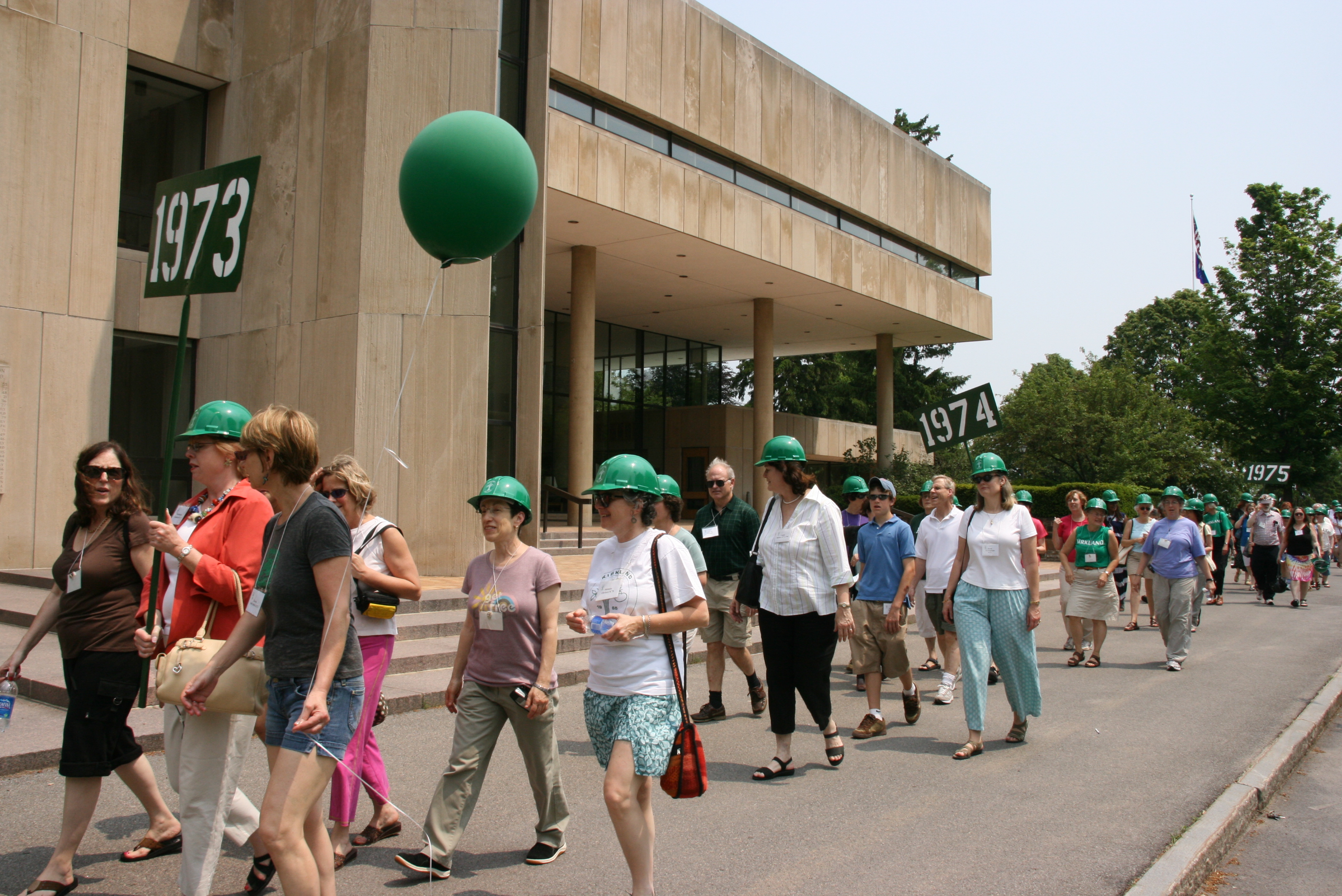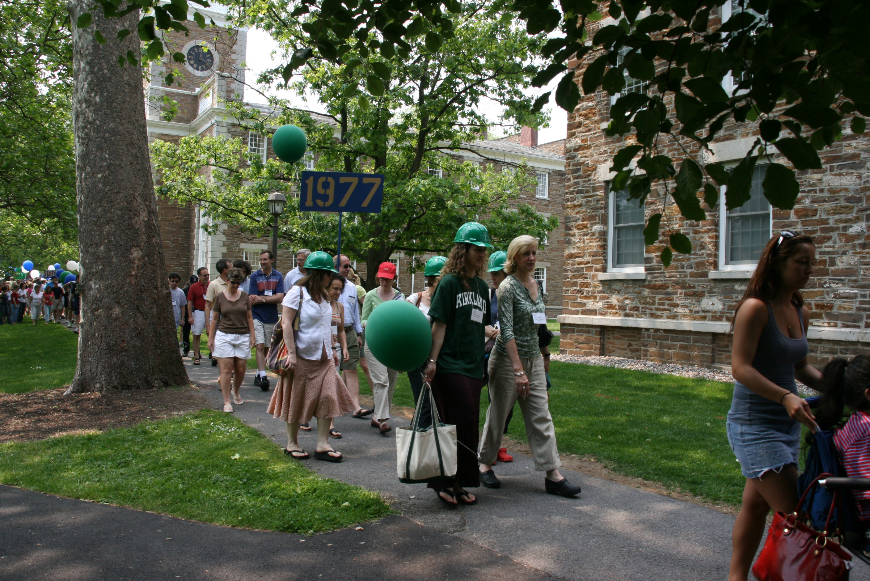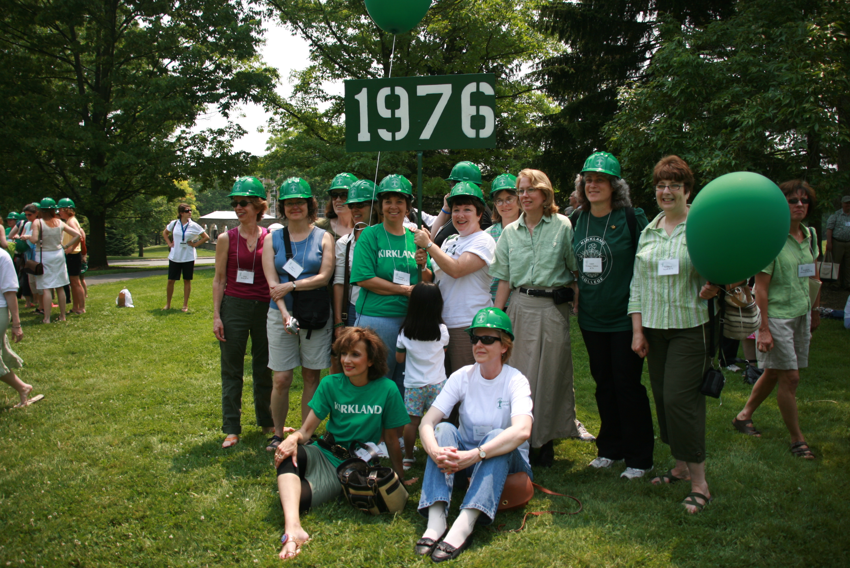 To welcome all Kirkland classes back to campus in Hamilton’s bicentennial year, everyone was gifted with a plastic version of the hardhat – so those of us who had lost theirs along the way could envy our sisters with originals! The alumni parade that year featured a sea of green.